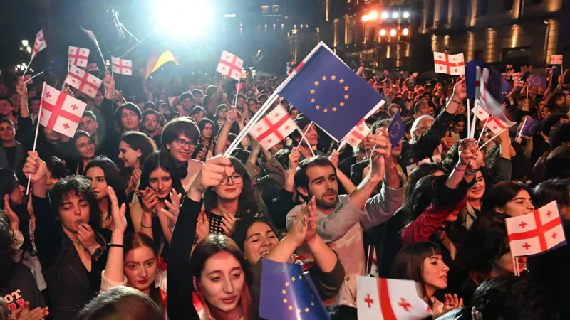 “სამხრეთ კავკასიის ამ 3,7 მილიონიან ქვეყანაში ბევრს სჯერა, რომ ეს არჩევნები გადამწყვეტი იქნება ევროკავშირში გაწევრიანებისთვის. ოპოზიციური პარტიების კოალიცია უპირისპირდება „ქართულ ოცნებას“, რომელიც 2012 წლიდან მზარდი ავტორიტარული გზით მართავს. გამოკითხვები მიუთითებს, რომ ქართველების დაახლოებით 80% მხარს უჭერს ევროკავშირში გაწევრიანებას და კონსტიტუცია ავალდებულებს ლიდერებს გაწევრიანებას როგორც EU-ში, ასევე ნატოში.