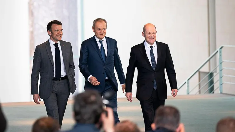 საფრანგეთის პრეზიდენტმა ემანუელ მაკრონმა, გერმანიის კანცლერმა ოლაფ შოლცმა და პოლონეთის პრემიერ-მინისტრმა დონალდ ტუსკმა ერთობლივი განცხადება გაავრცელეს და საქართველოში არსებული პოლიტიკური ვითარების გამო შეშფოთება გამოხატეს, – ამის შესახებ ინფორმაციას Reuters-ი ავრცელებს.