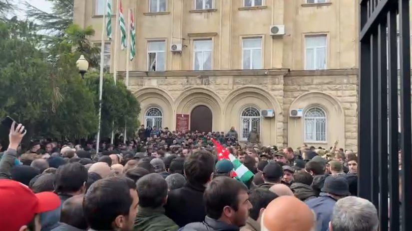 ადგილობრივი მედიის თანახმად, საპროტესტო აქციაზე ხალხი დილიდან იკრიბებოდა, რუსეთისა და აფხაზეთის დროშებით. ისმოდა შეძახილები: არ გაყიდოთ ქვეყანა, არ ჩაიდინოთ ღალატი. ე.წ. პარლამენტის შენობასთან სამართალდამცველებმა სატვირთო ავტომობილების კოლონა ჩააყენეს და ჟურნალისტებს შენობაში შესვლის უფლებას არ აძლევდნენ