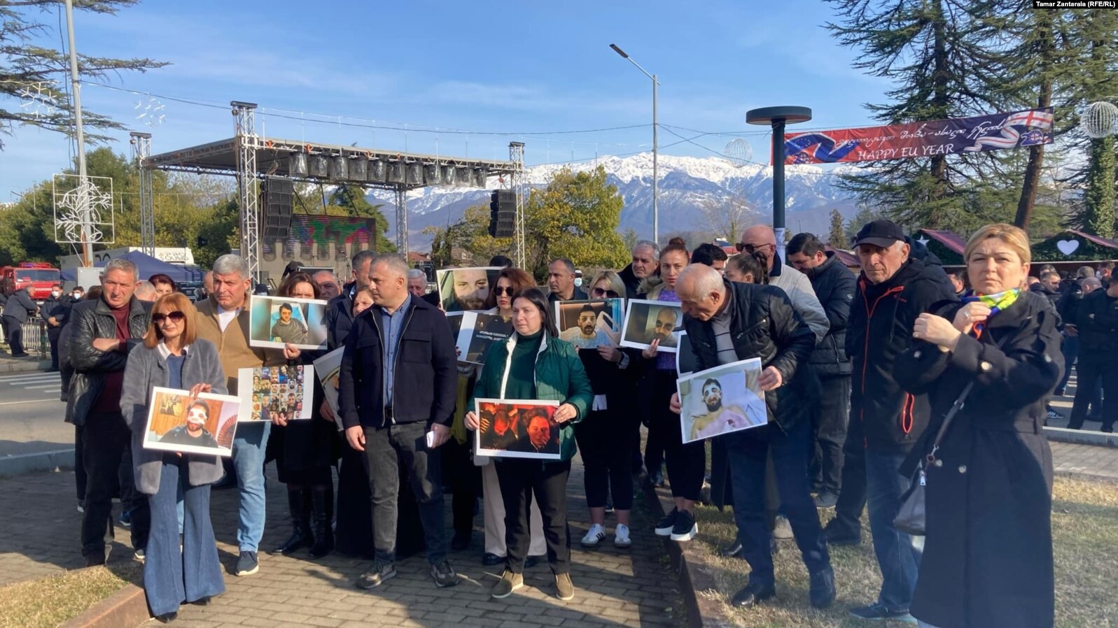 წალენჯიხის ცენტრში გასამართი კონცერტისთვის დამონტაჟებულ სცენასთან დღეს საპროტესტო აქციაც გაიმართა. მონაწილეებს თან ჰქონდათ თბილისში ნაცემი დემონსტრანტების ფოტოები.