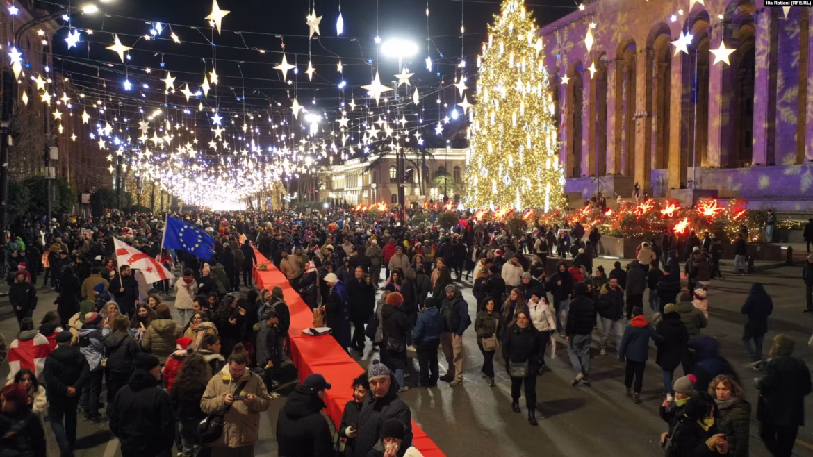 რუსთაველის გამზირზე, პარლამენტის შენობის მიმდებარედ, ახალი წლის ღამეს ათასობით ადამიანი ერთად შეხვდა ახალ წელს. მოსახლეობამ საავტომობილო გზის შუაში გაშალა კილომეტრიანი საახალწლო სუფრა.