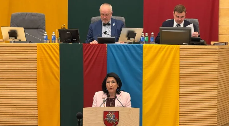 დღეს საქართველოში რეპრესიებია. უდანაშაულო ხალხს, ჟურნალისტებს, მსახიობებს, სტუდენტებს, სამოქალაქო საზოგადოების ლიდერებსა და პოლიტიკურ ლიდერებს მიათრევენ პოლიციის განყოფილებებში, ბრალს უყენებენ და განაჩენი გამოაქვთ შეთხზული ბრალდებებით, – ამის შესახებ სალომე ზურაბიშვილმა ლიეტუვის სეიმის პლენარულ სხდომაზე სიტყვით გამოსვლისას განაცხადა: